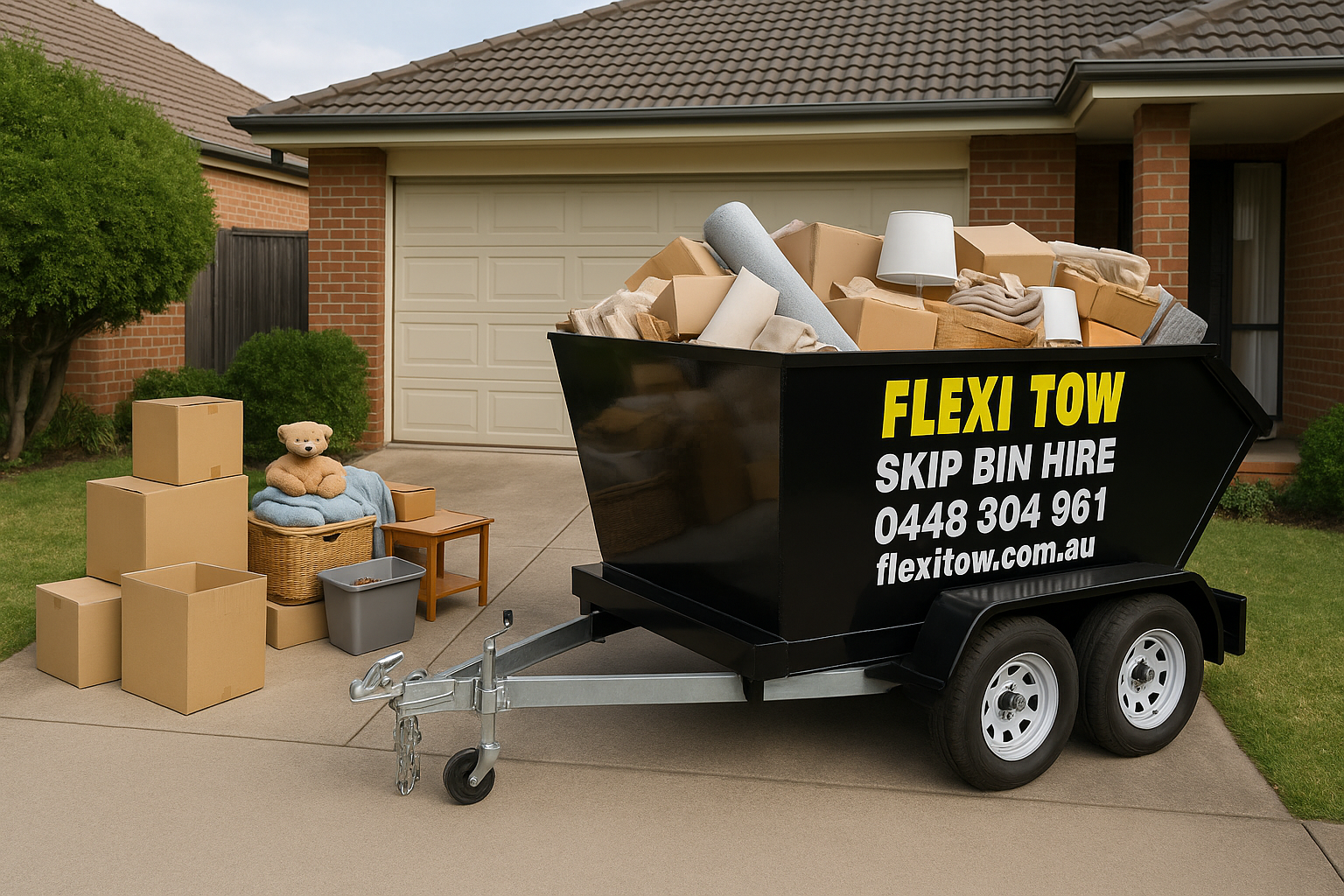 At Flexi Tow, we’re redefining waste removal with fast, flexible, and eco-conscious skip bin hire. Our trailer-mounted bins are compact, secure, and can be delivered within just 3 hours — no towing required from you. Whether you’re tackling a home clean-up, managing a worksite, or planning an event, we provide a hassle-free solution tailored to your needs.