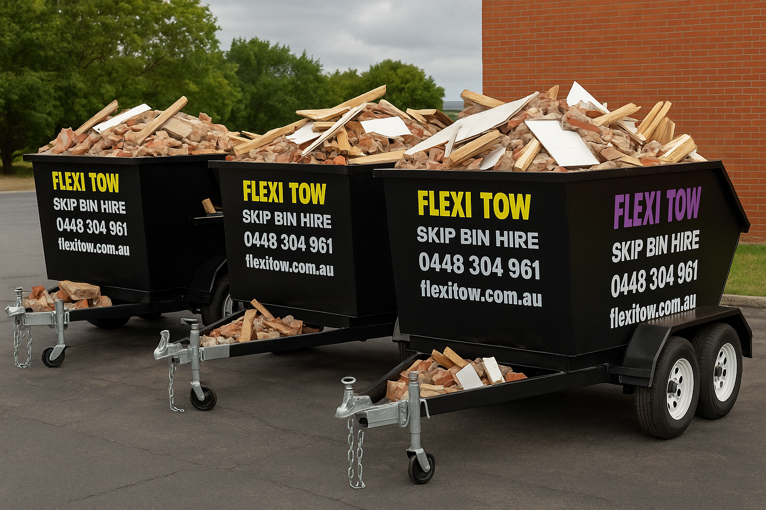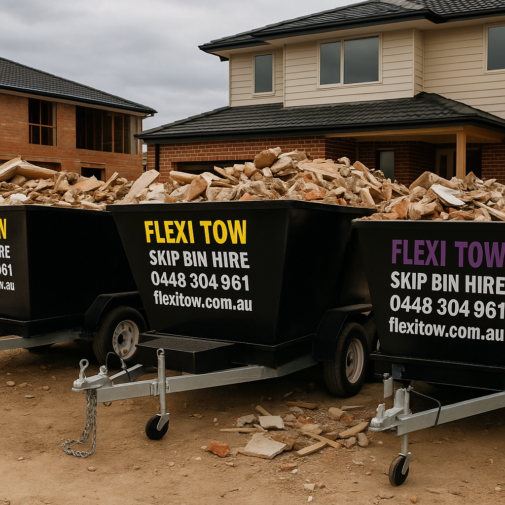Flexi Tow provides fast, eco-friendly skip bin hire with same-day delivery, no towing required, and full-service waste management.